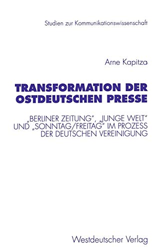 🕮 Download This Book Transformation der ostdeutschen Presse: "Berliner Zeitung", "Junge Welt" und "Sonntag/Freitag" im Proze? der deutschen Vereinigung (Studien zur Kommunikationswissenschaft, Band 26) zusammenfassung deutch